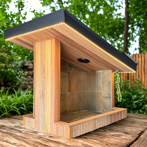 The Monaco dog kennel combines luxury and modern design with premium hardwood cladding and a tiled interior for easy cleaning and durability. Equipped with LED lighting and a built-in Bluetooth speaker, it offers comfort and entertainment for your pet. A solar panel powers an integrated cooling fan, ensuring a pleasant environment even on warm days. Included chew rope adds playful stimulation, making this kennel a sophisticated and practical retreat for your dog.